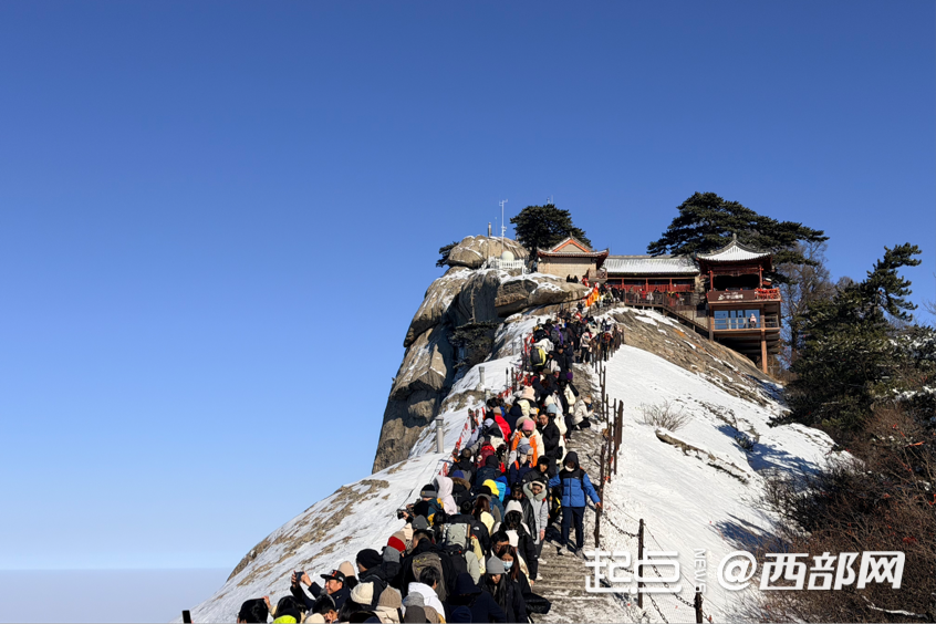 2026-01-03 17:05:00 , Source : Discover ShaanxiOn January 2nd, the spectacular Huashan Mountain was cloaked in snow, with every peak as beautiful as jade, showcasing a magnificent snow-and-ice scene. As the clouds parted after the snowfall, the entire scenic area transformed into an ethereal wonderland, drawing crowds of visitors eager to witness this awe-inspiring natural spectacle.