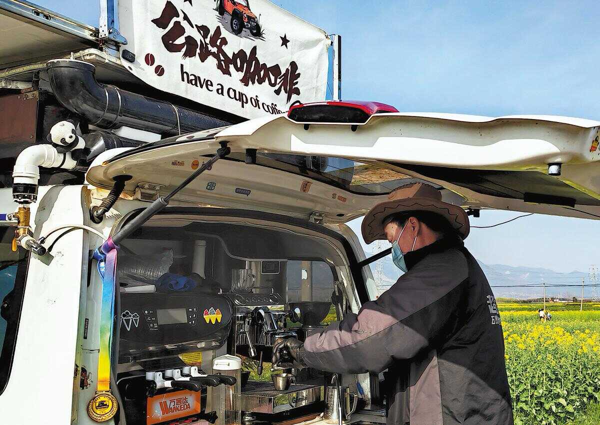 XI'AN — Amid a golden sea of canola flowers in the countryside, a caravan can be seen parked on the road, while a fusion of the aromas of coffee and flowers drifts in the air, attracting tourists and perhaps a few bees and butterflies from far and wide.