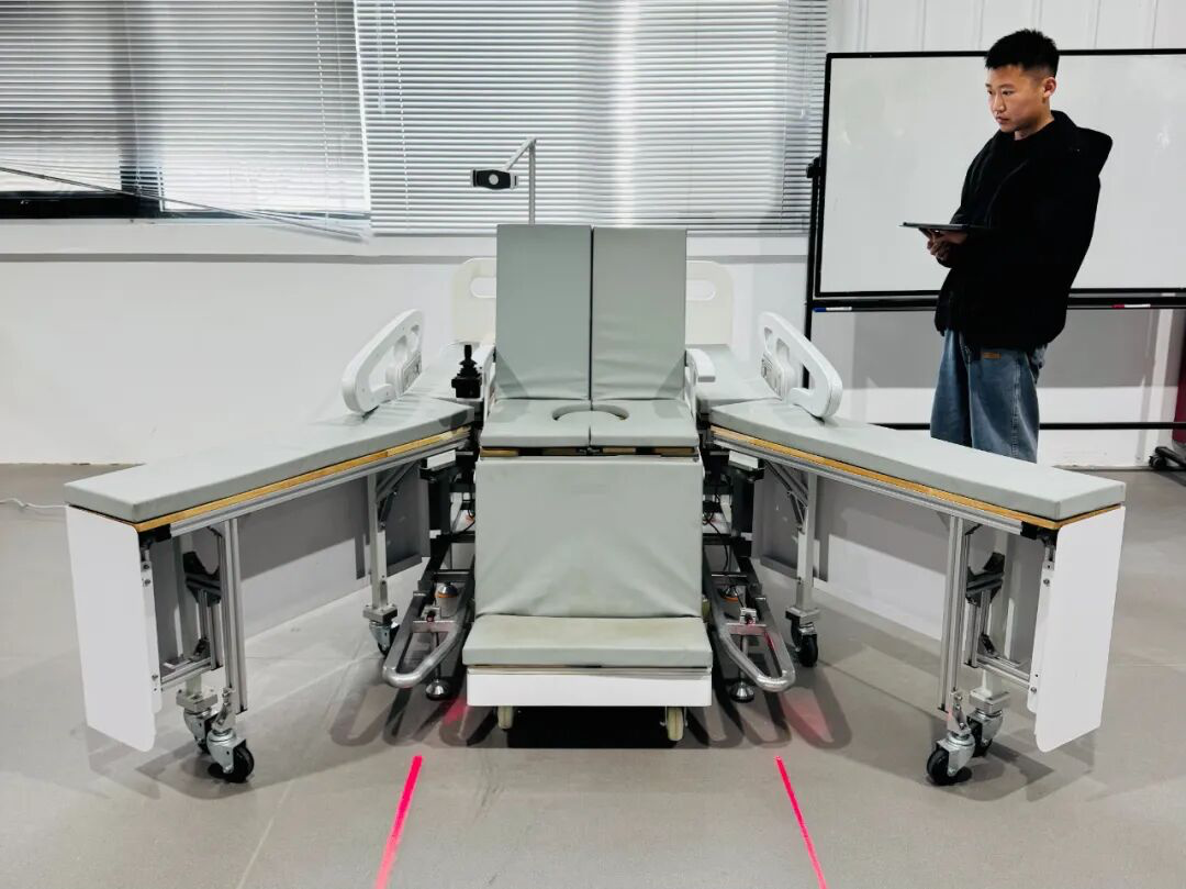 This may look like an ordinary nursing bed, but it's actually the world's first intelligent, unattended self-care robot. It combines four-stage turning and bed-chair functions, making it ideal for use in nursing homes and home settings. This innovative design meets the independent living and short-distance mobility needs of elderly individuals and rehabilitation patients.