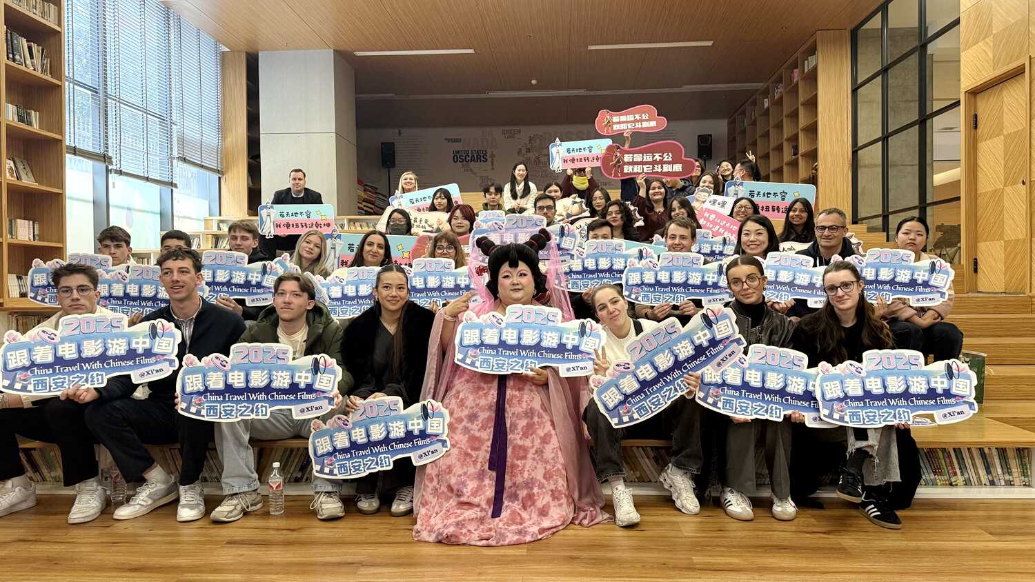 About 30 overseas young people, including a visiting French student cultural exchange group and international students studying in Xi'an, participate in the cultural exchange event "China Travel With Chinese Films @Xi'an" in Xi'an, Shaanxi Province, February 27, 2025. /Photo by Li Mingyue