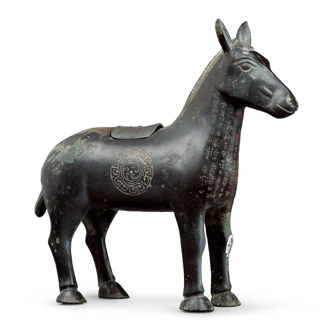 The bronze sacrificial wine vessel (zun) of a standing horse, dating back to the Western Zhou Dynasty, is on display at the National Museum of China. (Photo/National Museum of China)