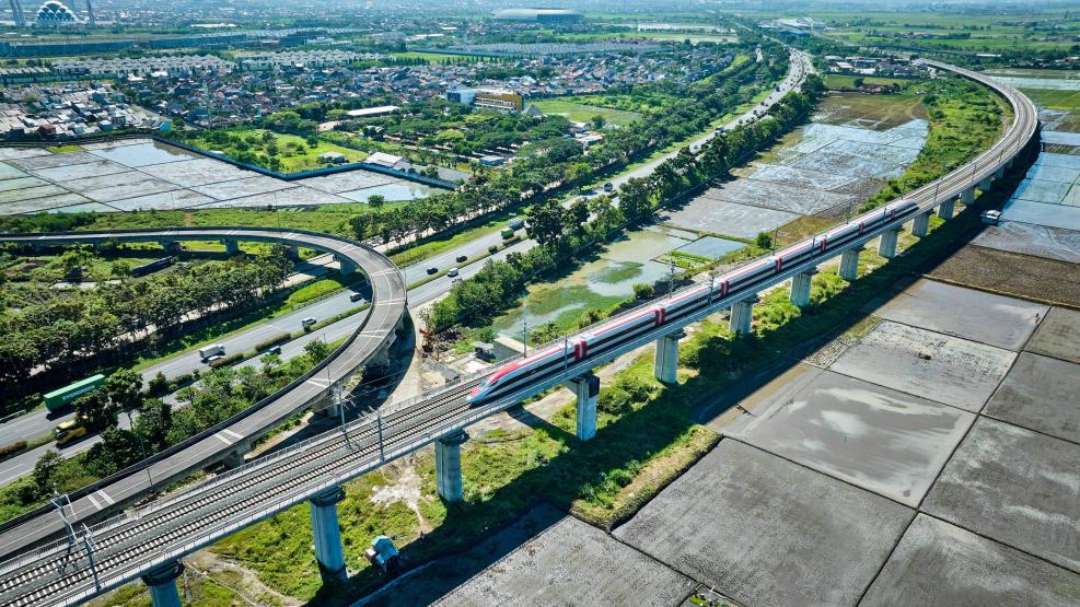 A high-speed train runs on the Jakarta–Bandung High-Speed Railway in Indonesia. (Photo/Shi Jiamin)